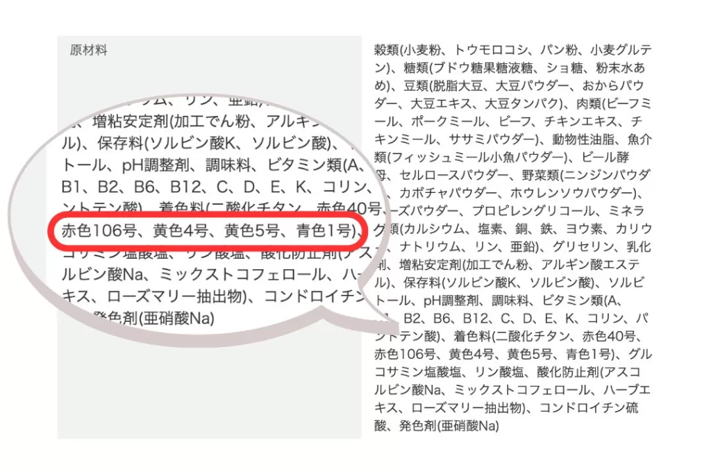 ドッグフードのラベルの表記には、配合されている全ての原材料名が記載されています。日本のペットフードの法律でもある「ペットフード安全法」には表記の表現についての定まりがないため、メーカーによって原材料の表記はさまざまなのが現状です。