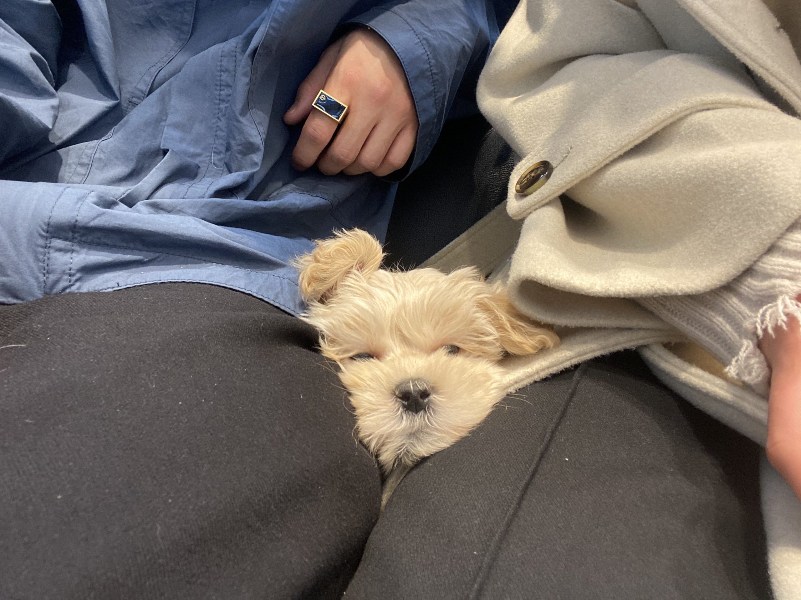 くまくんと初めて出会ったのは、ふらっと立ち寄ったペットショップ。一度ケージから出してもらい触れ合おうとしたところ、くまくんの方からトコトコと歩いてきて、飼い主さんとパートナーさんの間に挟まって寝始めたそうです。