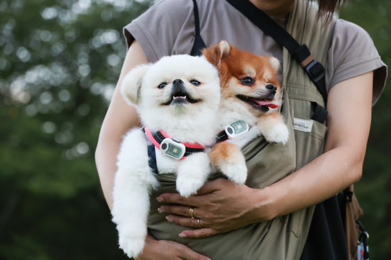 人が大好きなのと、自分が可愛いという自覚があるのか、愛想を振りまくのが得意です。散歩中やドックランでは、他の飼い主さんに一通り挨拶して回り、抱っこをせがんだり懐に入ったり、みんなをメロメロにしてしまいます。